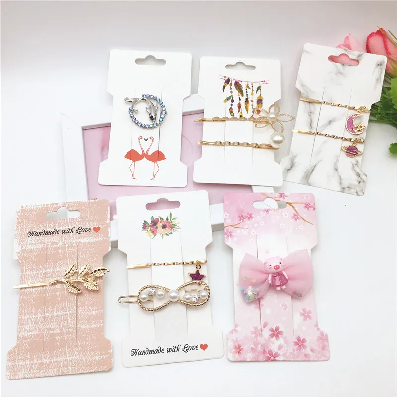 Карточки для зажима для волос, 100 шт., разные стили, аксессуары для волос, витрина для ювелирных изделий, модная упаковка для зажима для волос, винтажная классическая Карта