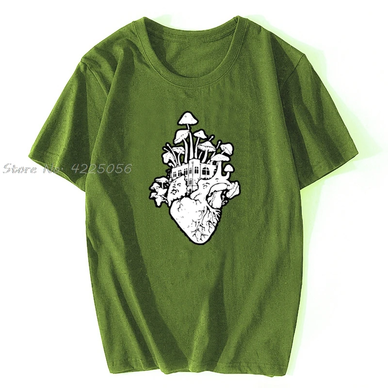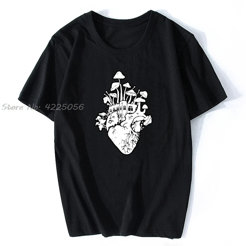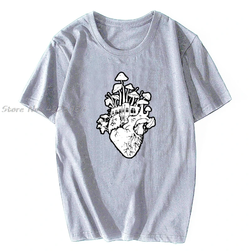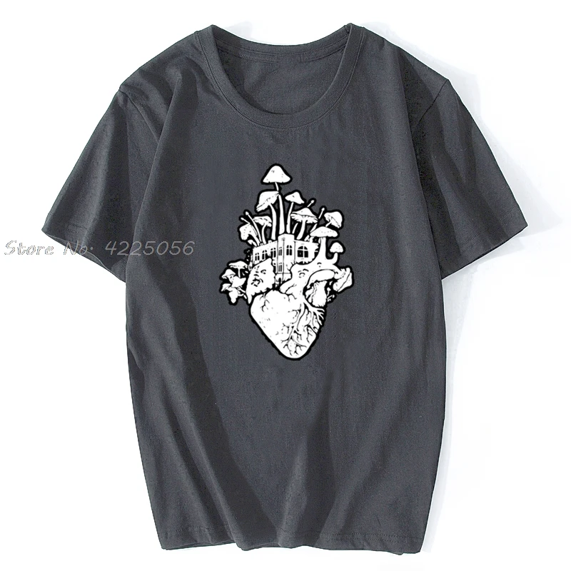 Футболка мужская с принтом в виде сердца грибов, Модная хлопковая тенниска в винтажном стиле, психоделический хиппи с принтом кислоты, уличная одежда