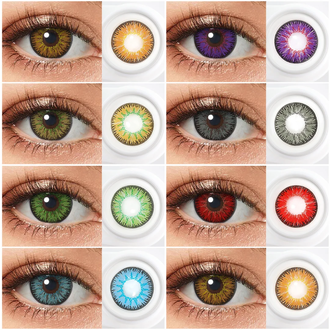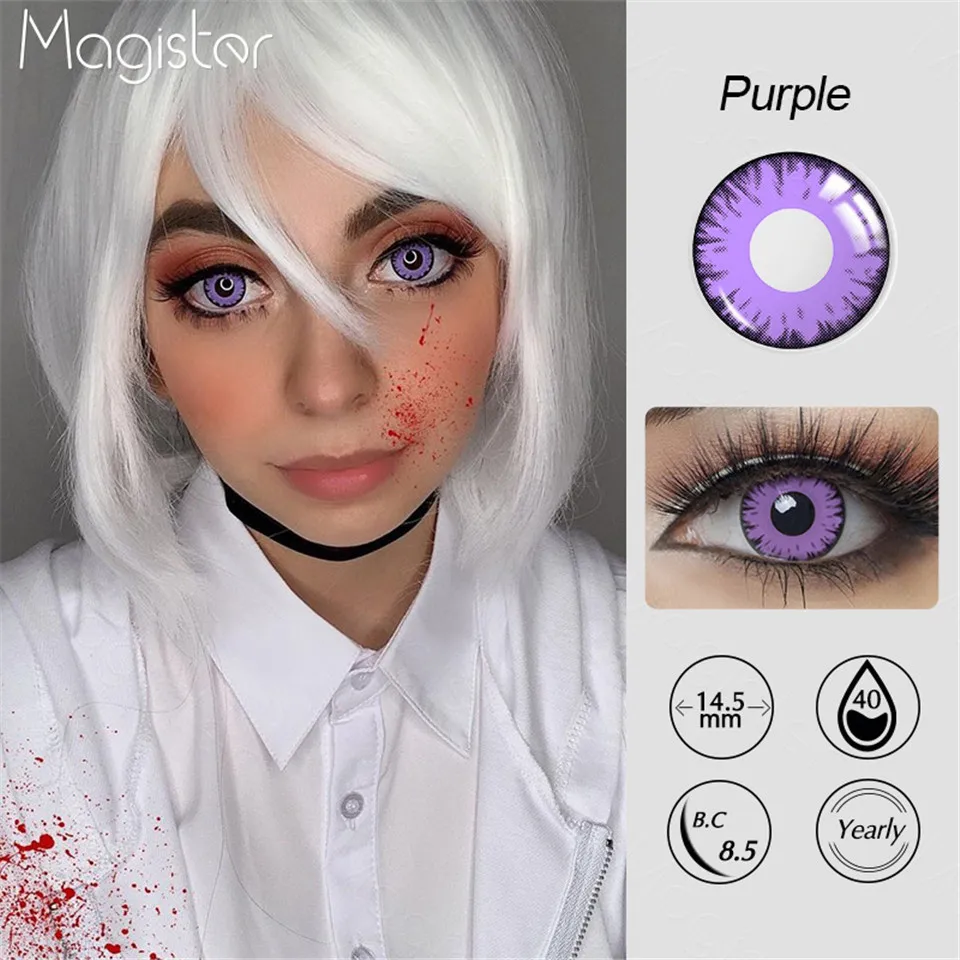 Контактные линзы цветные, серые, синие, фиолетовые, зеленые, контактные линзы для Хэллоуина, 1 пара