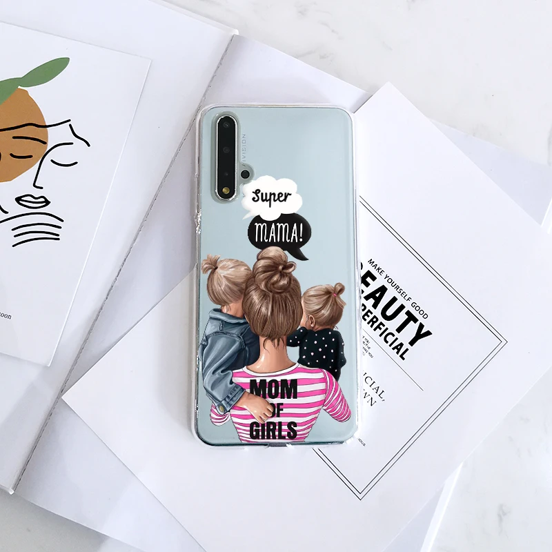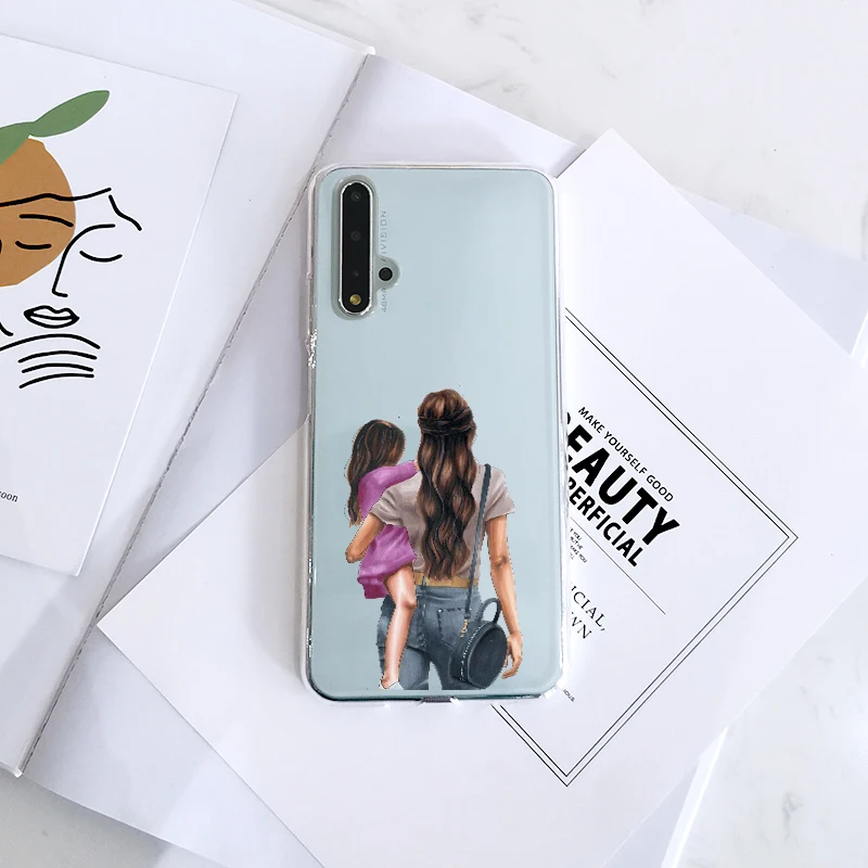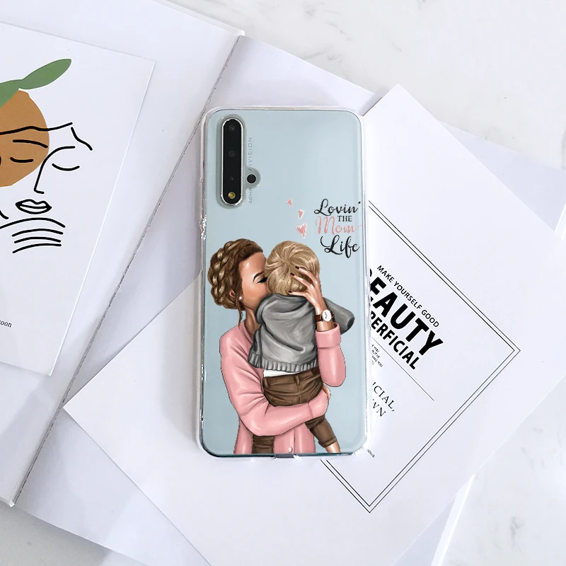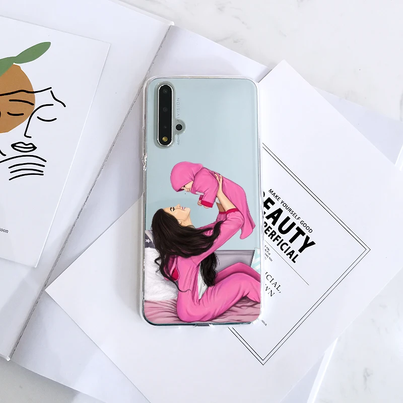 Fashion Black Brown Hair Baby Mom Girl Patterned Painted Phone Case