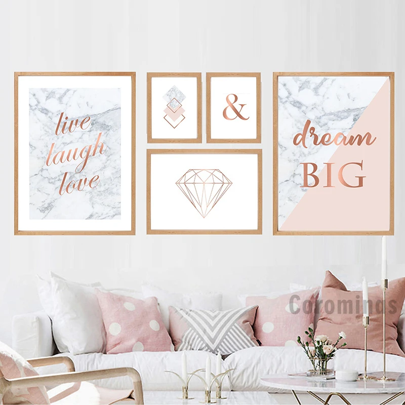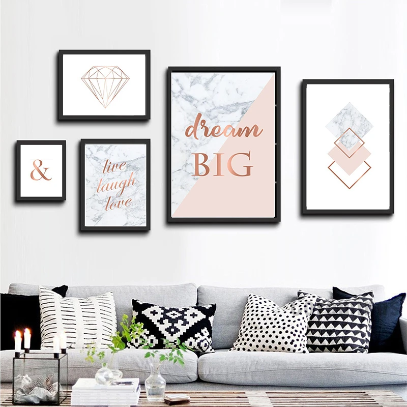 Скандинавский стиль розовый и темно-синий настенное искусство абстр...