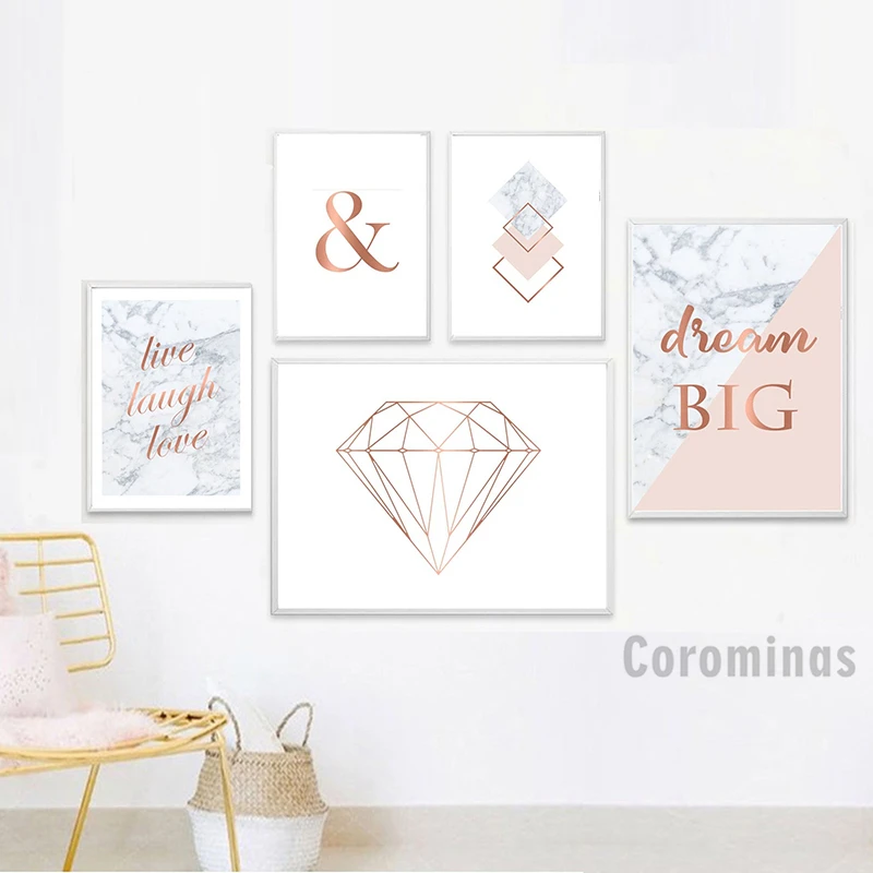 Скандинавские принты, Постер розового и золотого цветов, шевроны, г...