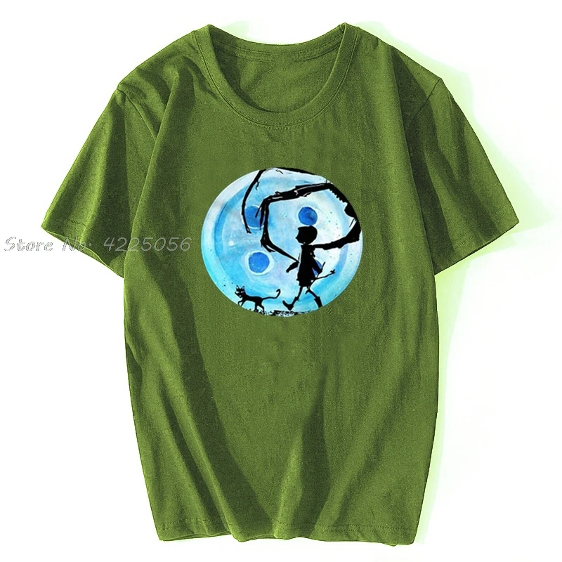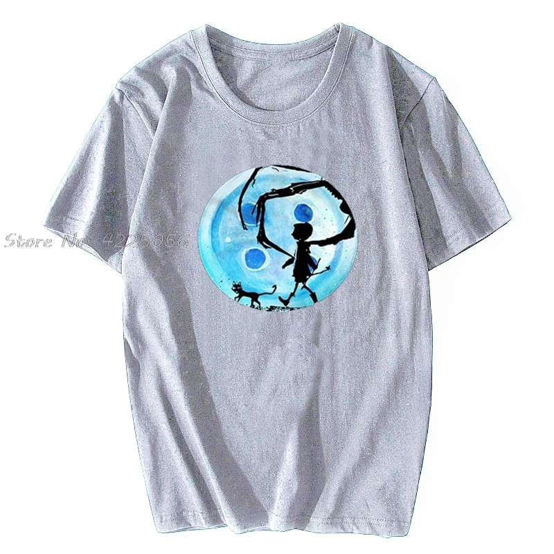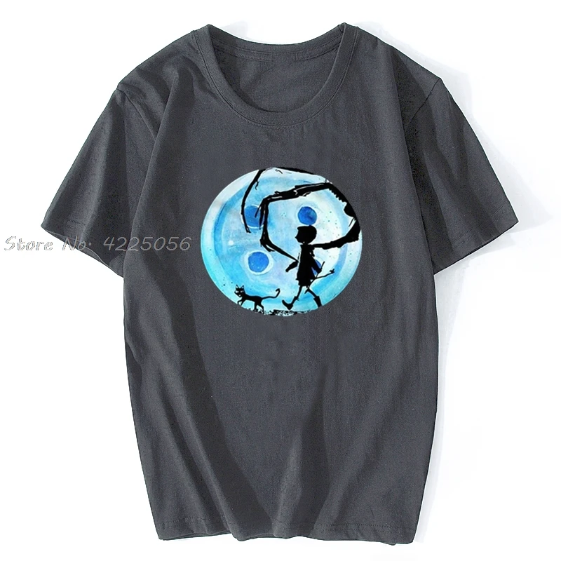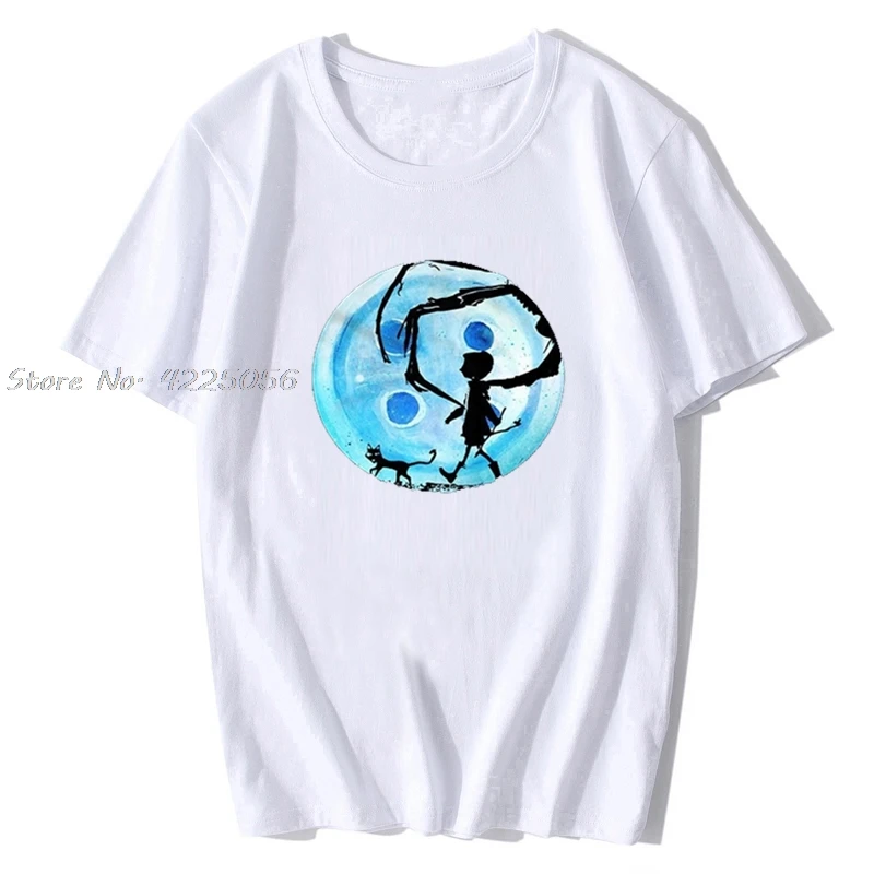 Коралина синий по казахскому обычаю, в комплект с принтом "Кошмар кошка Хэллоуин ужас Кнопка Футболка с принтом Модные мужские хлопковые футболки с рисунком в уличном стиле