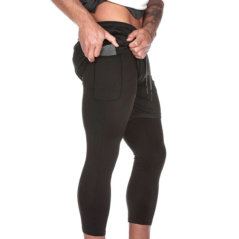 2020 новые спортивные брюки мужские эластичные дышащие двухкомпонентные Беговые тренировочные тренажерные залы быстросохнущие брюки длиной до щиколотки M-XXXL