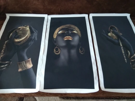 Все 100 баллов бы поставила. Качество отличное. Заказывала 3 картины, триптих. Без белой рамки 50 на 100. Сочные цвета, чёрный фон матовый. Бузумно красиво. Осталось подрамники сделать и готово. Кстати продавцу спасибо за то, что я попросила немного изменить картину. В этой руки смотрят в разные стороны, что мне и нужно было. Пришло быстро, намотано полотна на пластиковый валик. Все целое и невредимое.