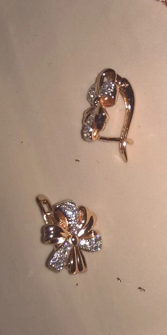 Серьги такие красивые и милые. Я в восторге. Сверкают, как золотые. Камушки светятся!!! Я так рада приобретению!!!!! Спасибо магазину!!!!!
