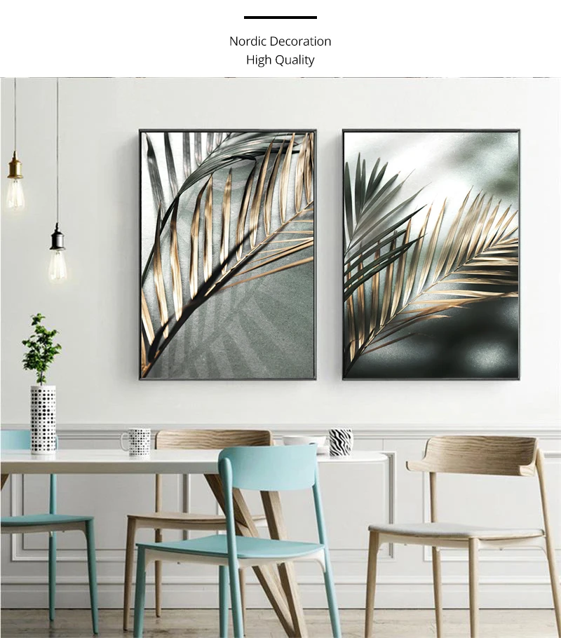Картина на холсте с изображением золотых пальмовых листьев, ботаническая Скандинавская Настенная картина, принт, скандинавские украшения, картина для домашнего декора