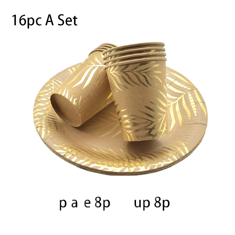 Бумажные тарелки с тропическими пальмовыми листьями из золотой фольги, одноразовая посуда, набор бумажных полотенец, чашек, набор планшетов для украшения детской вечевечерние
