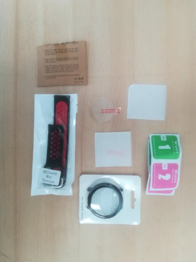 Материал: силиконДоступные цвета на выборРазмер ширины: 22 ммРазмер запястья подходит для 155-210 мм Посылка включает в себя:1x силиконовый ремешок для часов,1x чехол из поликарбоната2x Защитное стекло для экрана1x влажные салфетки1x сухие салфеткиПримечание: (часы в комплект не входят)