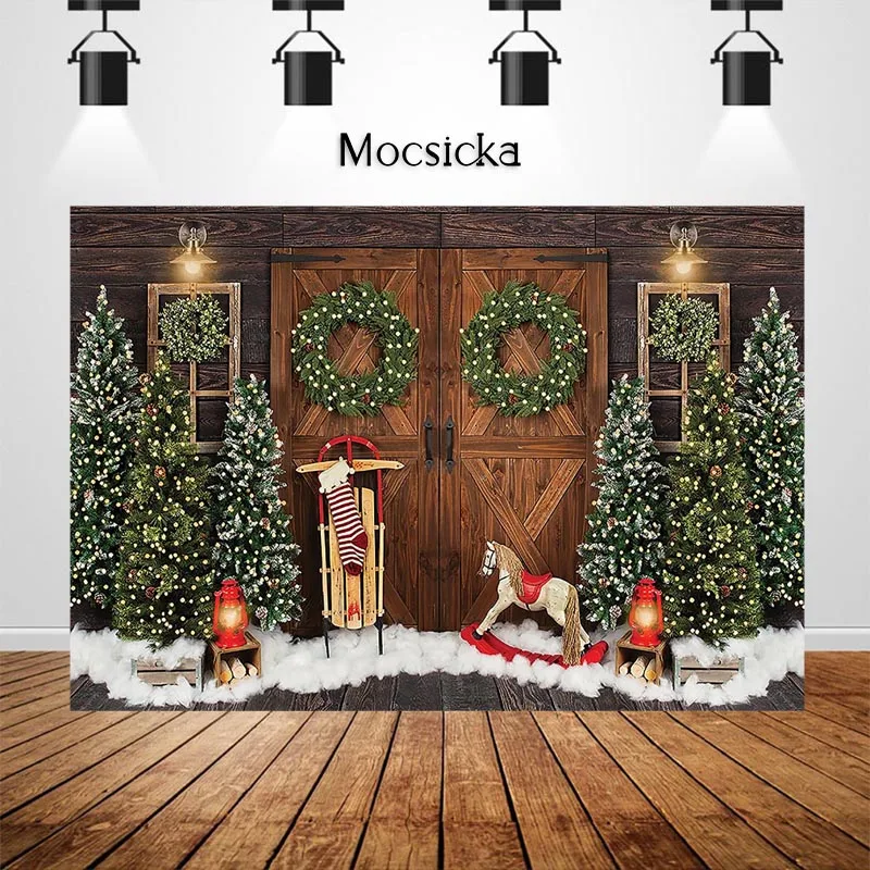 MOCSICKA Рождественская винтажная дверь Фотостудия Фото фоны Рождественская елка подарок декор Зимний снег фотография фон