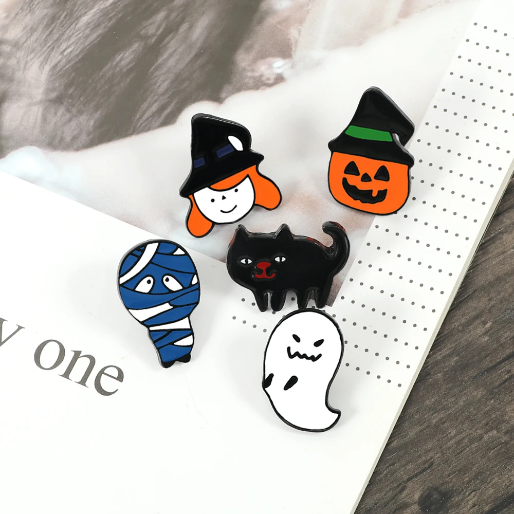 Эмалевые заколки на Хэллоуин, призрак, тыква, искусственная кожа, джинсовые рубашки, лацканы, заколки, праздвечерние чный подарок для друзей