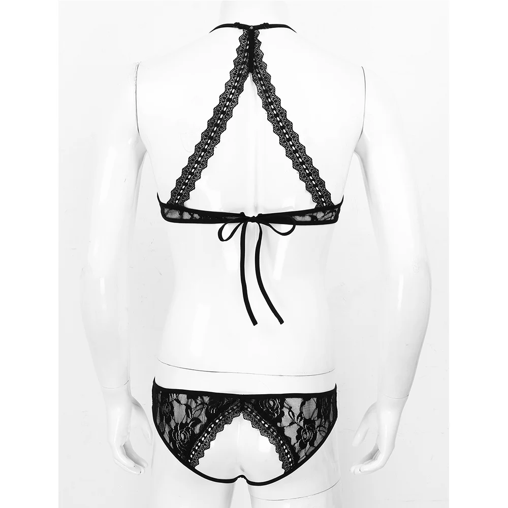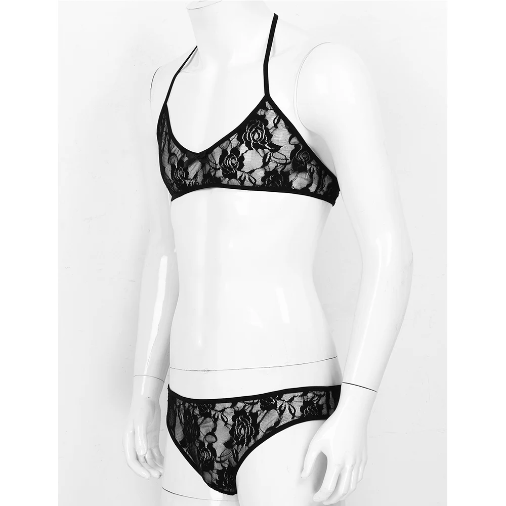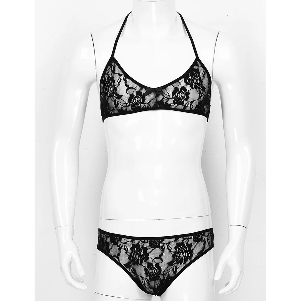 Мужской кружевной бюстгальтер s Sissy, трусы с прозрачным кружевом, экзотическое нижнее белье, комплект с бюстгальтером с открытой промежностью, топ с низкой посадкой, трусы для геев, мужское нижнее белье
