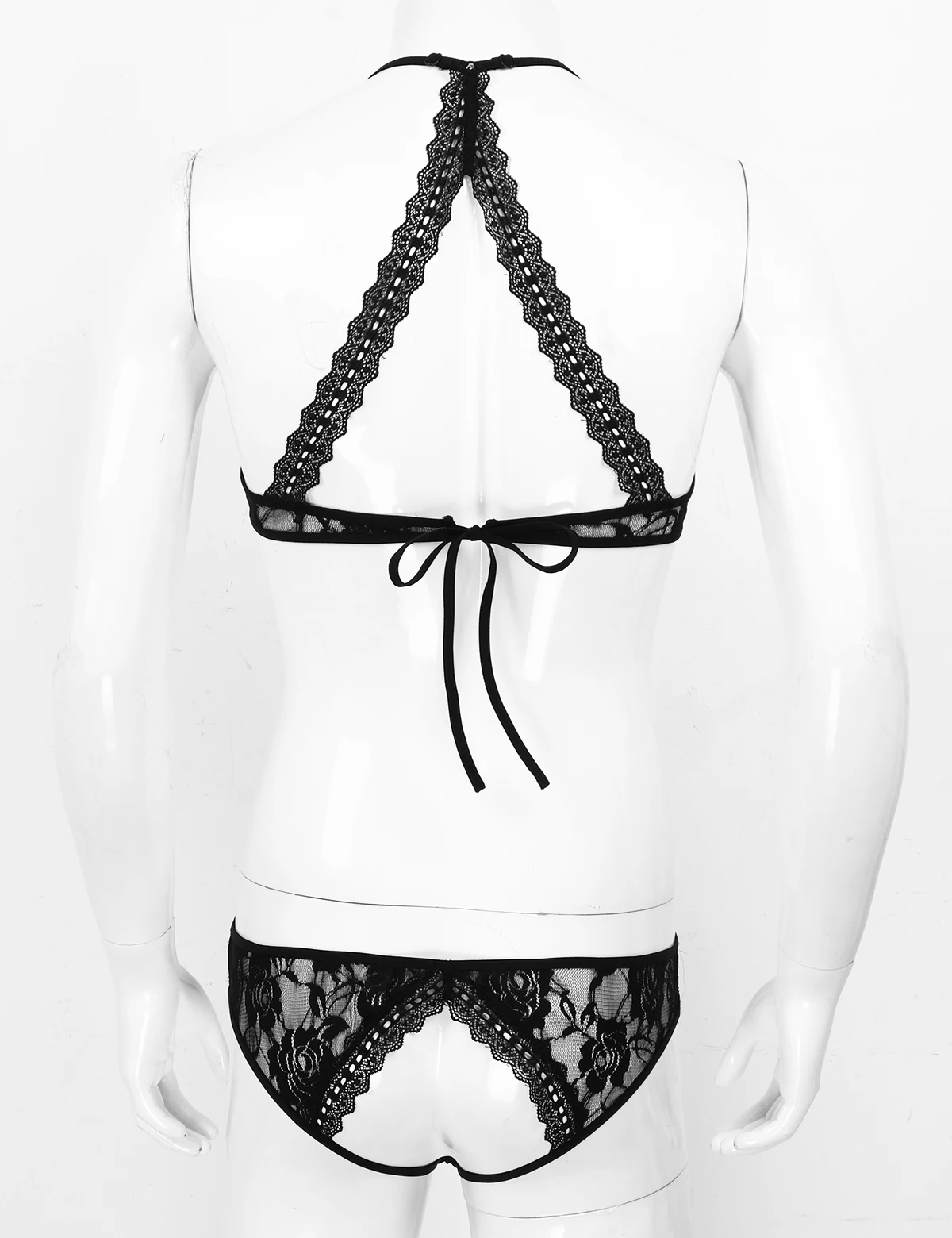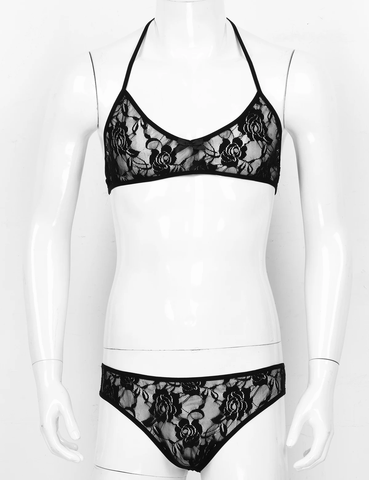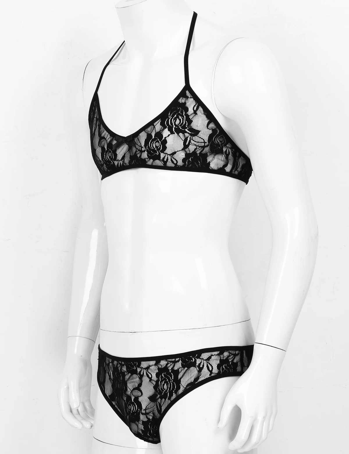 Мужской кружевной бюстгальтер s Sissy, трусы с прозрачным кружевом, экзотическое нижнее белье, комплект с бюстгальтером с открытой промежностью, топ с низкой посадкой, трусы для геев, мужское нижнее белье