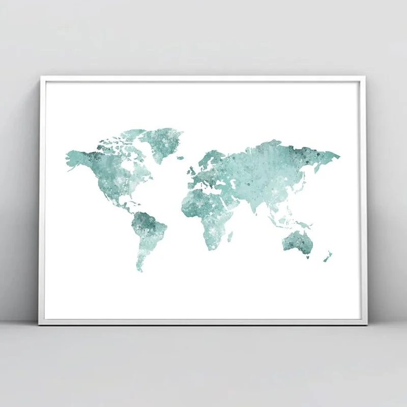 Карта мира подвесная картина мятно-зеленые украшения живопись гостиная домашний Холст плакат украшение светлый цвет настенное искусство