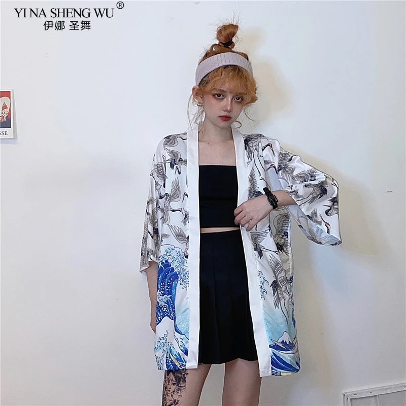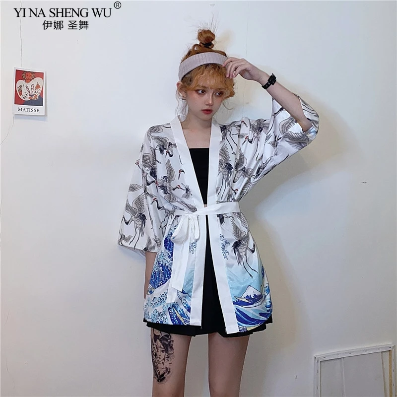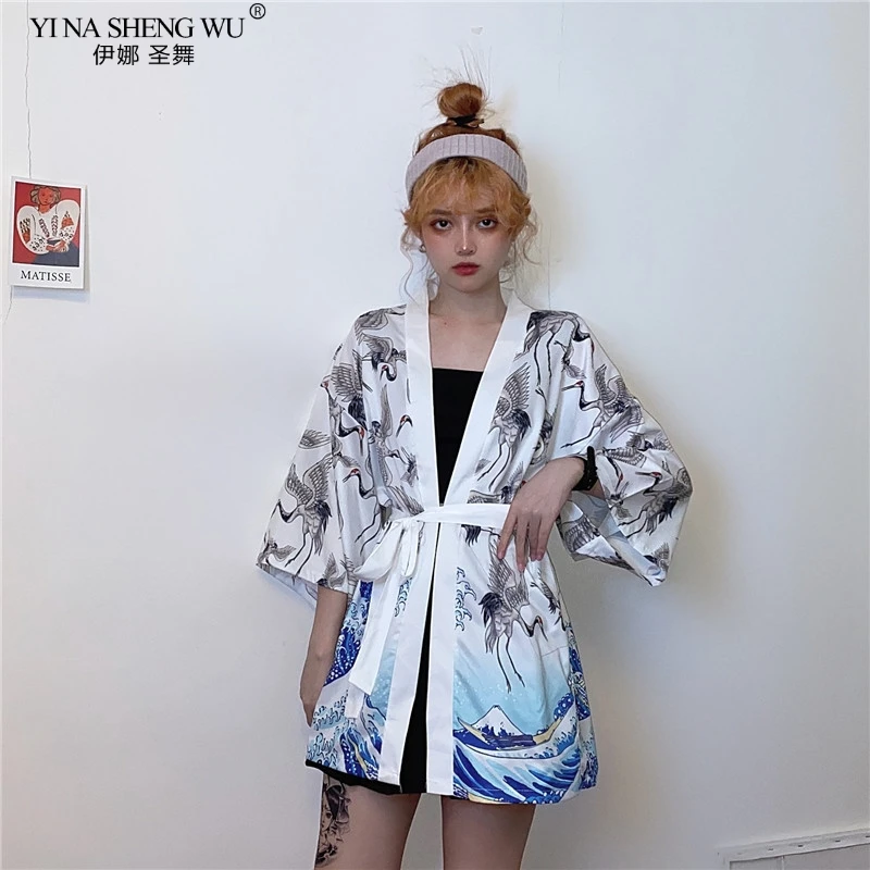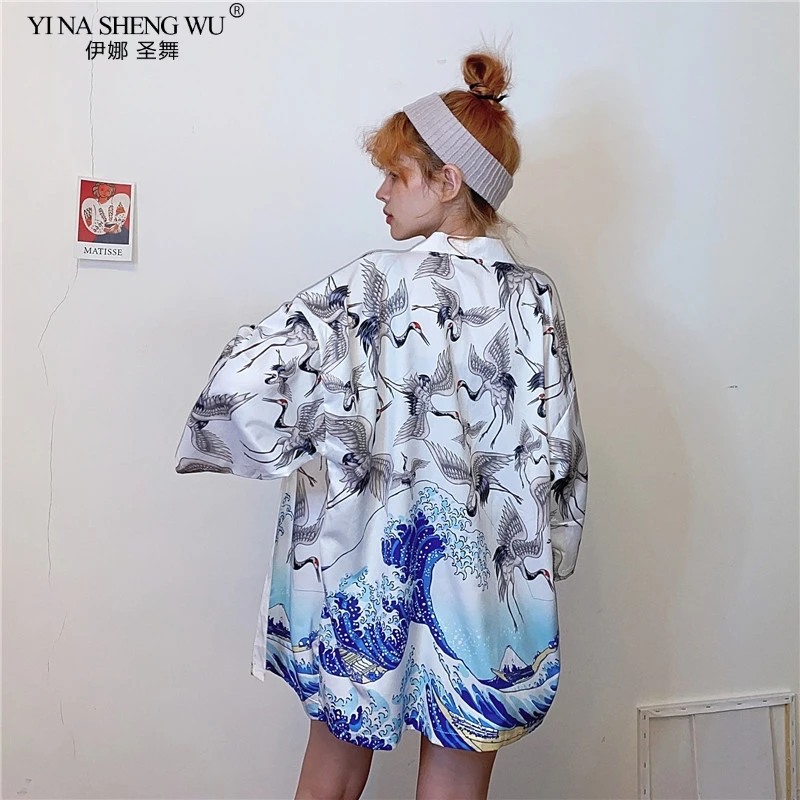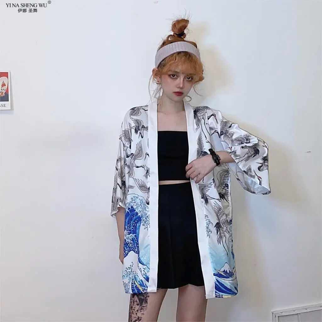 2020 кимоно с принтом журавлей, кардиган для женщин и мужчин в японском стиле, Obi Yukata, черная, Haori, традиционная Летняя Пляжная блуза, пальто