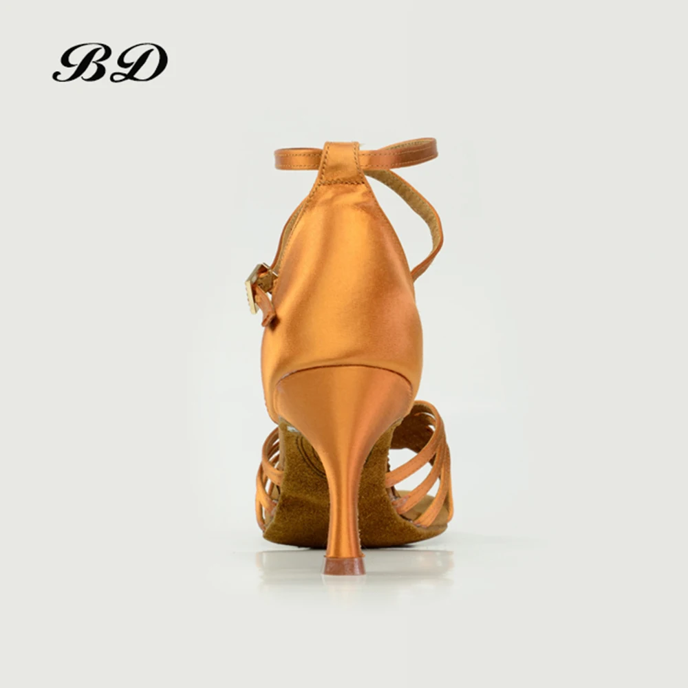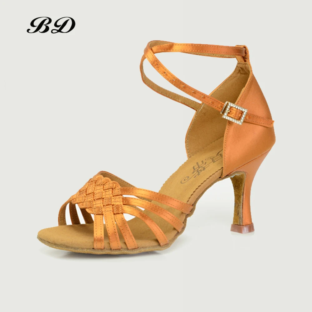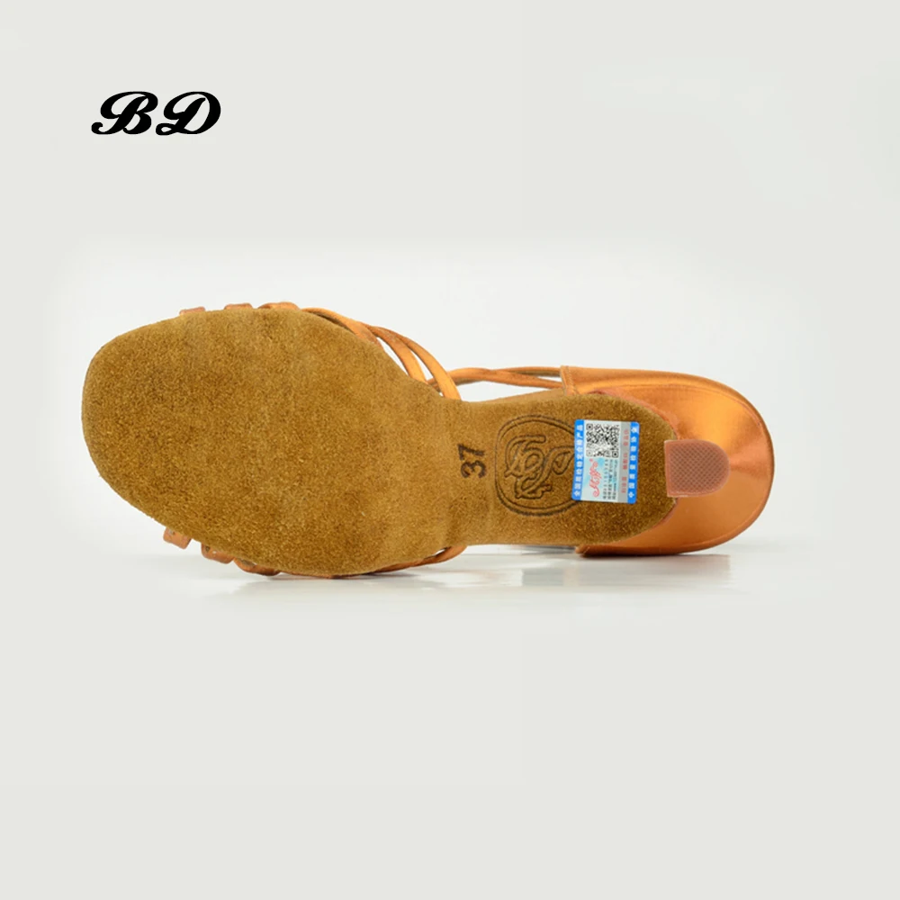 Женские туфли для танцев, туфли для бальных танцев, латиноамериканских танцев, импортные шелковые атласные туфли BD 2360 Cha, сальса, без каблука, с покрытием из воловьей кожи