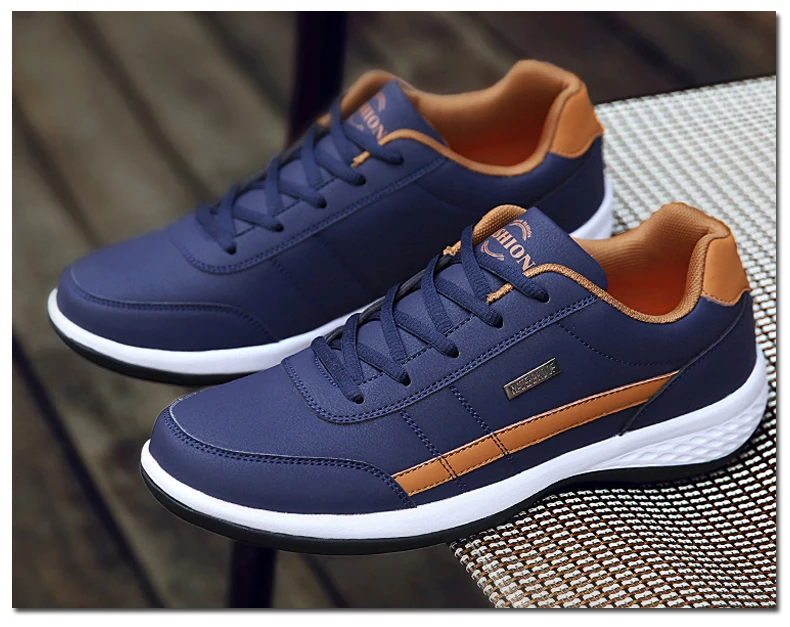 Кроссовки мужские из ПУ кожи, легкие кеды, плоская подошва, Повседн...