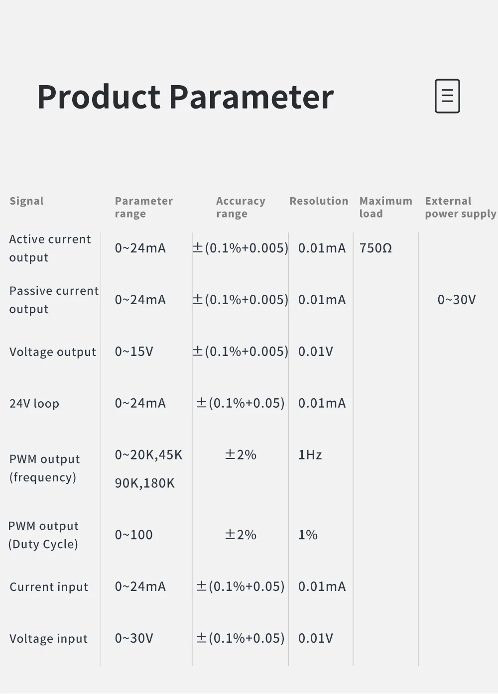 Продукт хорошего качества, имеет точные цифры по сравнению с хорошим мультиметром. Обеспечивает 0 20 мА и от 0 до 10 в, регулируемый для помощи тестирования аналоговых входов.