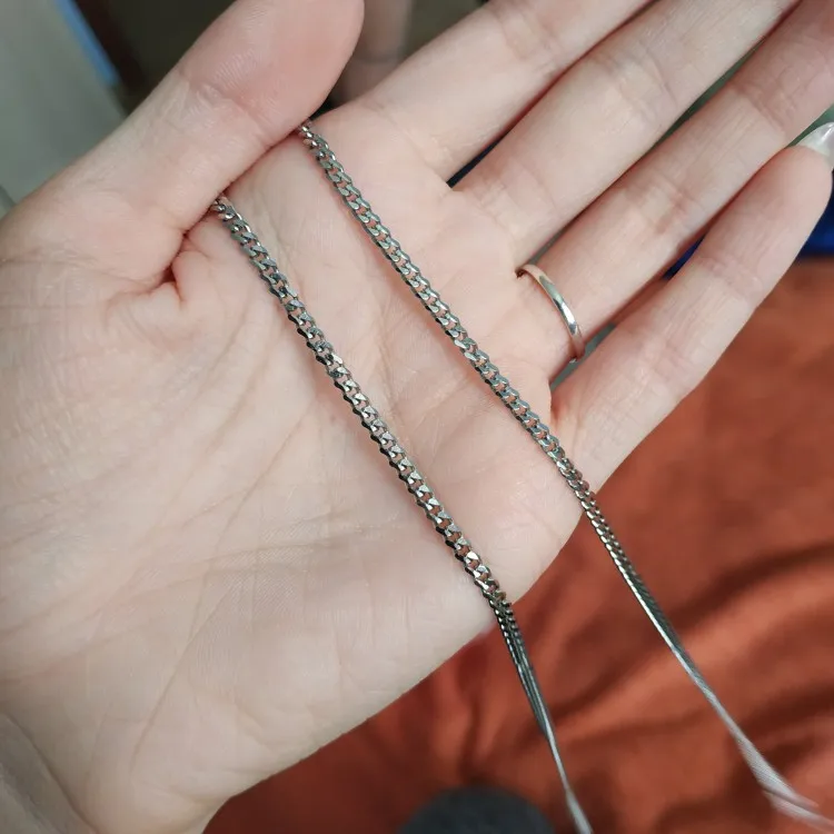 заказала повторно, эта цепочка максимально подхожа на серебро своим цветом и плетением, если сравнивать с аналогичными. но в этот раз пришла вся перекрученная, пришлось поправлять звенья