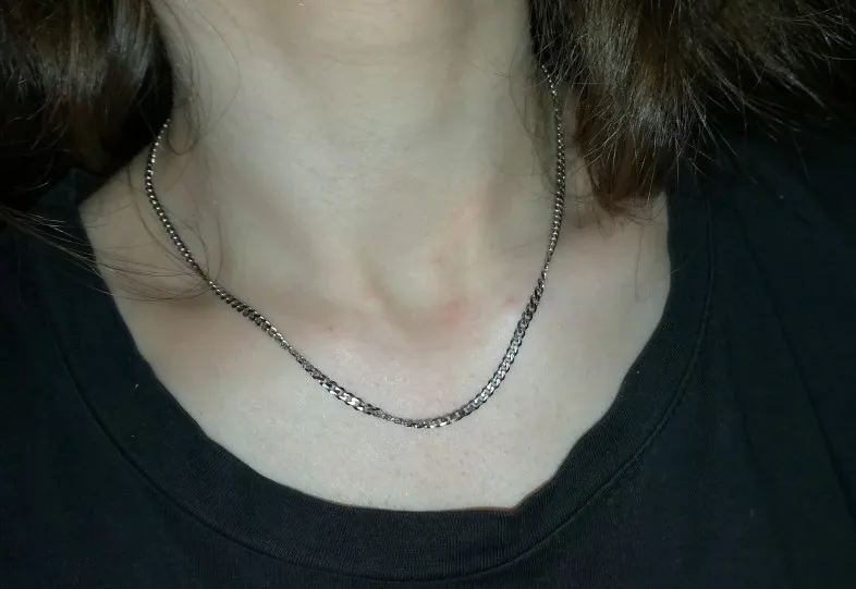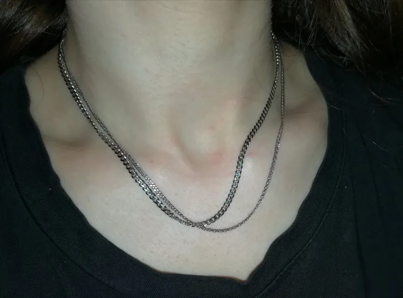 хорошее качество цепочки, плотная, жёсткая. не советую брать самый маленький размер, потому что она впритык к шее, хотелось посвободнее. но это уже мой промах, товар хороший