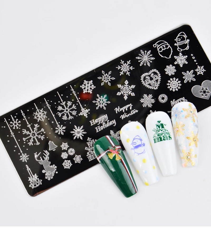 Пластина для стемпинга для нейл-арта цветок животное кружева новый год Счастливого Рождества дизайн ногтей шаблон штамп изображение Маникюр трафарет