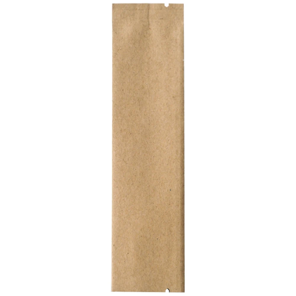 100 шт., 3x12 см, крафт-бумага, белый пищевой порошок, кофе, плоская упаковка, пакеты, алюминиевая фольга, майларовое тепловое уплотнение, открытые верхние мешки