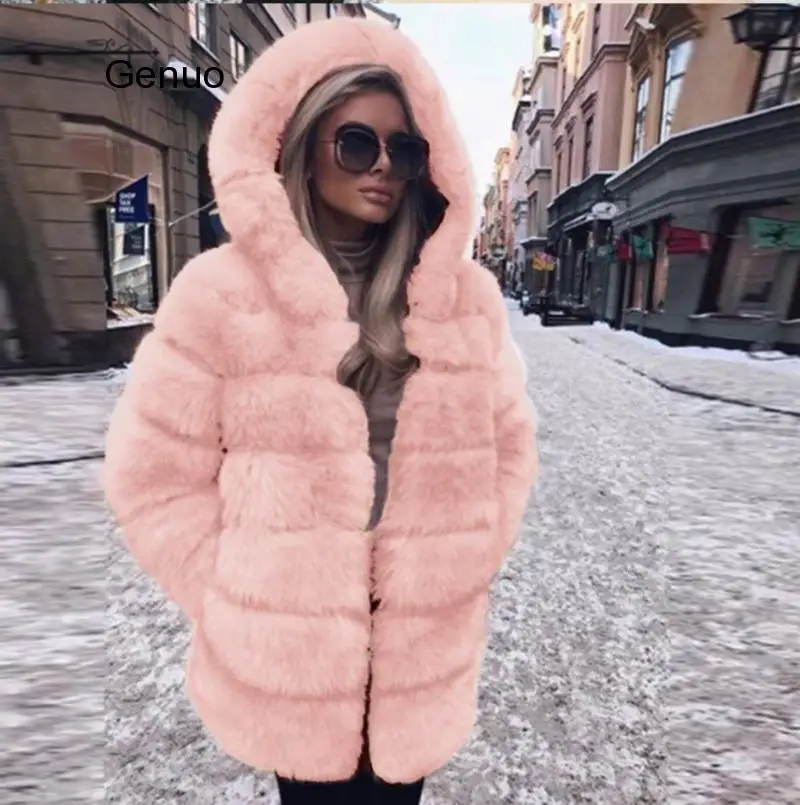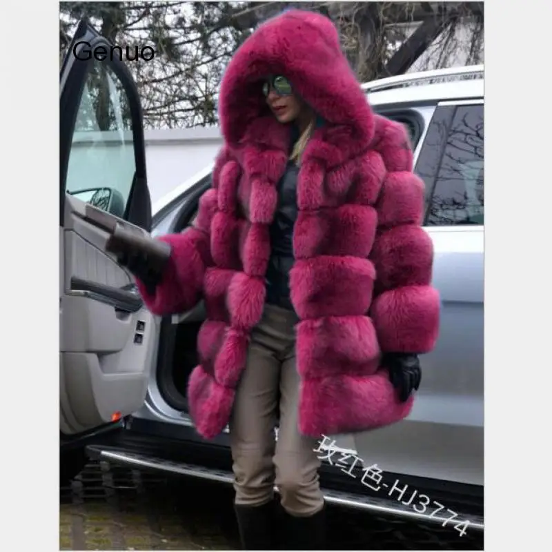 Шуба женская из искусственного лисьего меха, длинная, с капюшоном, зимняя, теплая, 2020