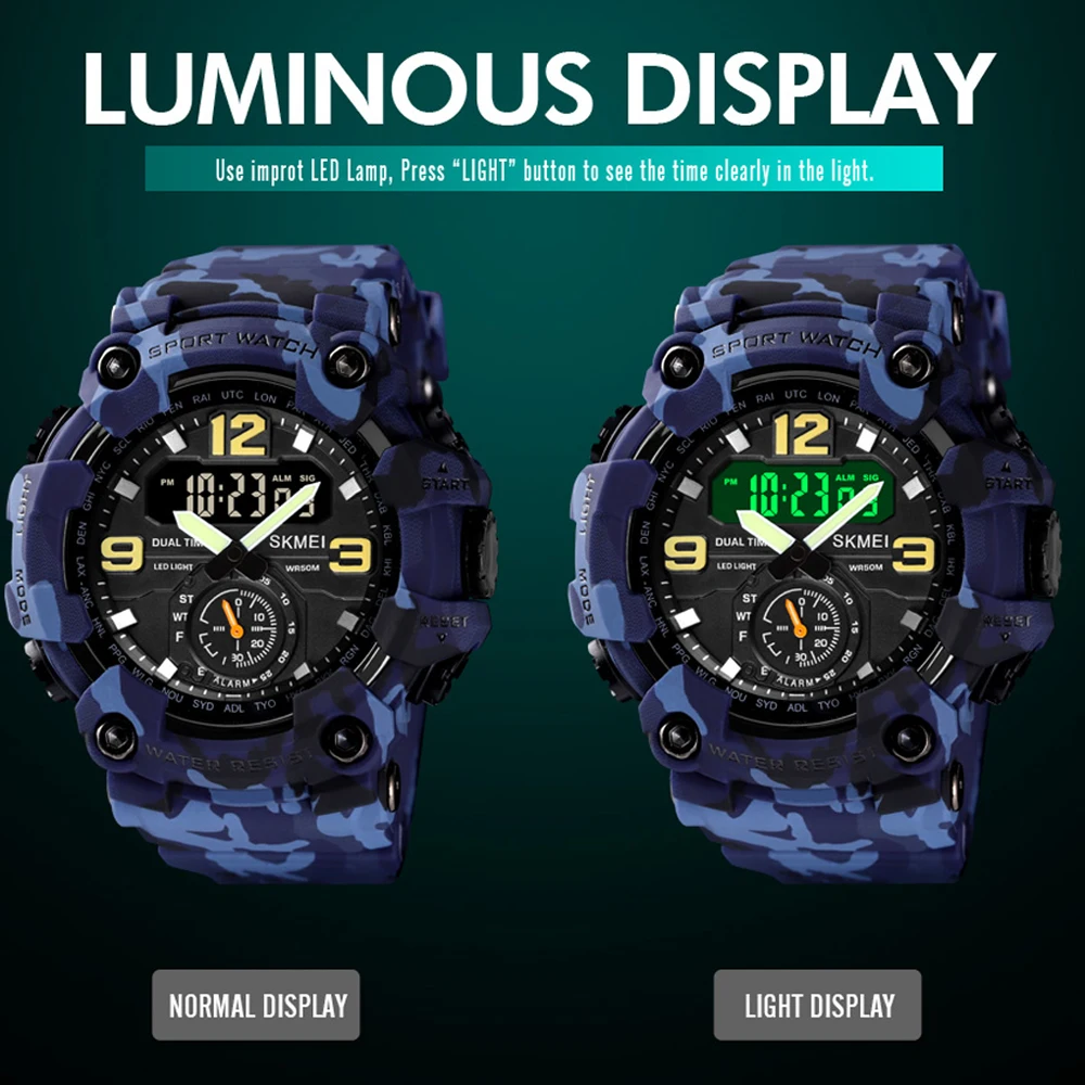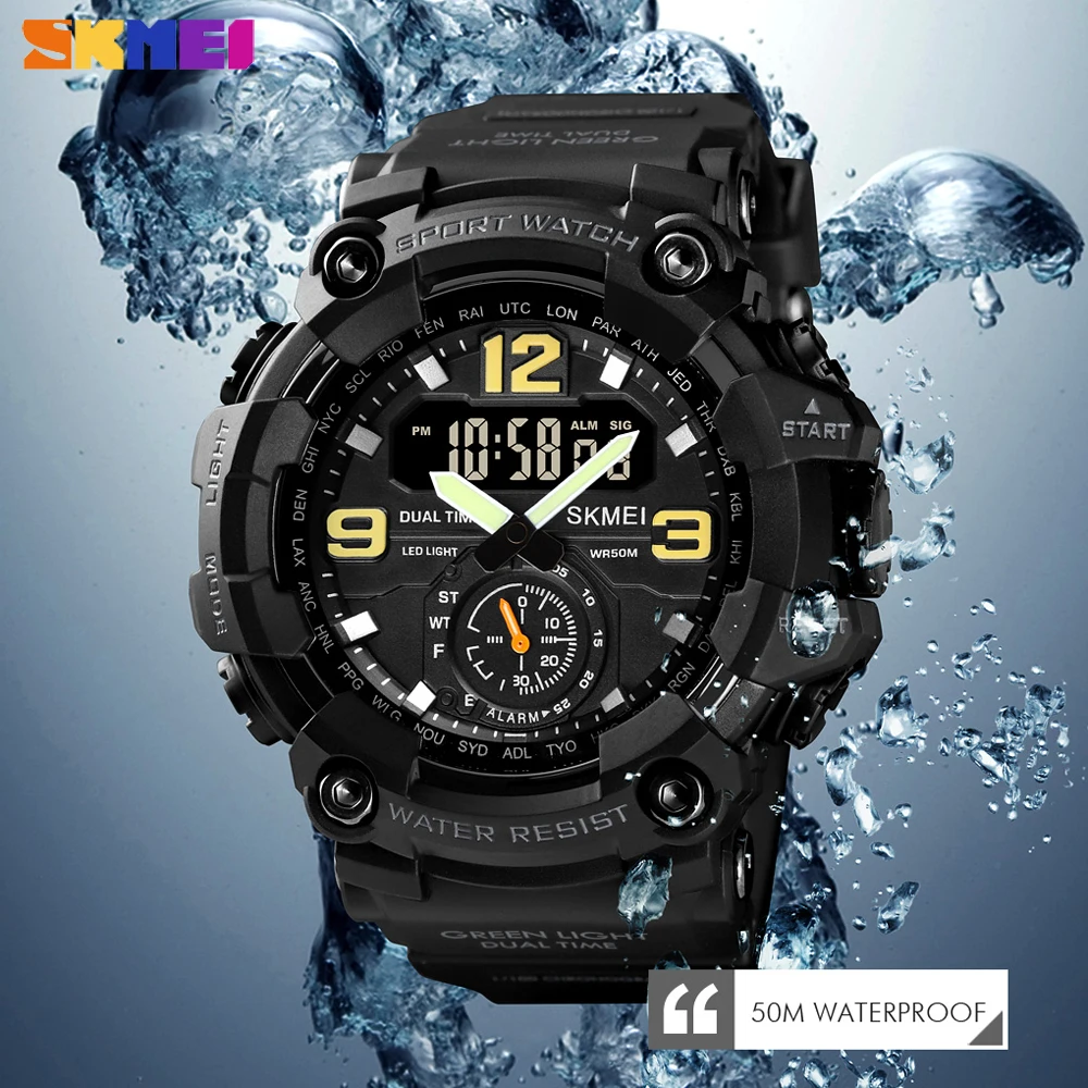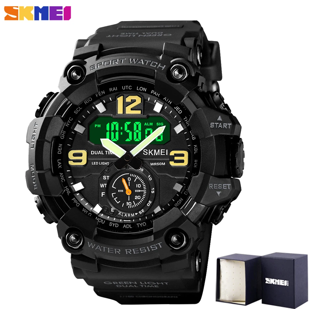 Часы мужские SKMEI, цифровые, аналоговые, светодиодсветодиодный, электронные, кварцевые, аналоговые, спортивные, хронограф, водонепроницаемые наручные часы