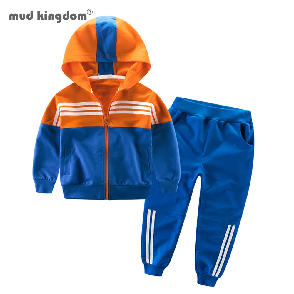 Mudkingdomкомплекты для маленьких мальчиков и девочек на осень и зиму, модная зимняя куртка с капюшоном и с длинными рукавами для детей спортивная одежда в стиле пэчворк, комплекты