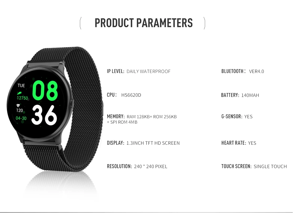 ● Musik steuerung, Zeit, Fernbedienung Kamera, Finden die band, Schrittzähler, vibratng erinnerung, anti-verloren, Abstand Berechnung, wecker.