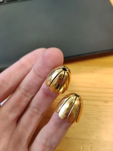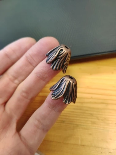 Мне нужен был цвет медь, а колпачки пришли скорее цвета бронзы. Достаточно крупно смотрятся, великоваты для моего украшения, к сожалению. Очень аккуратные и красивые. Быстрая отправка. Спасибо!