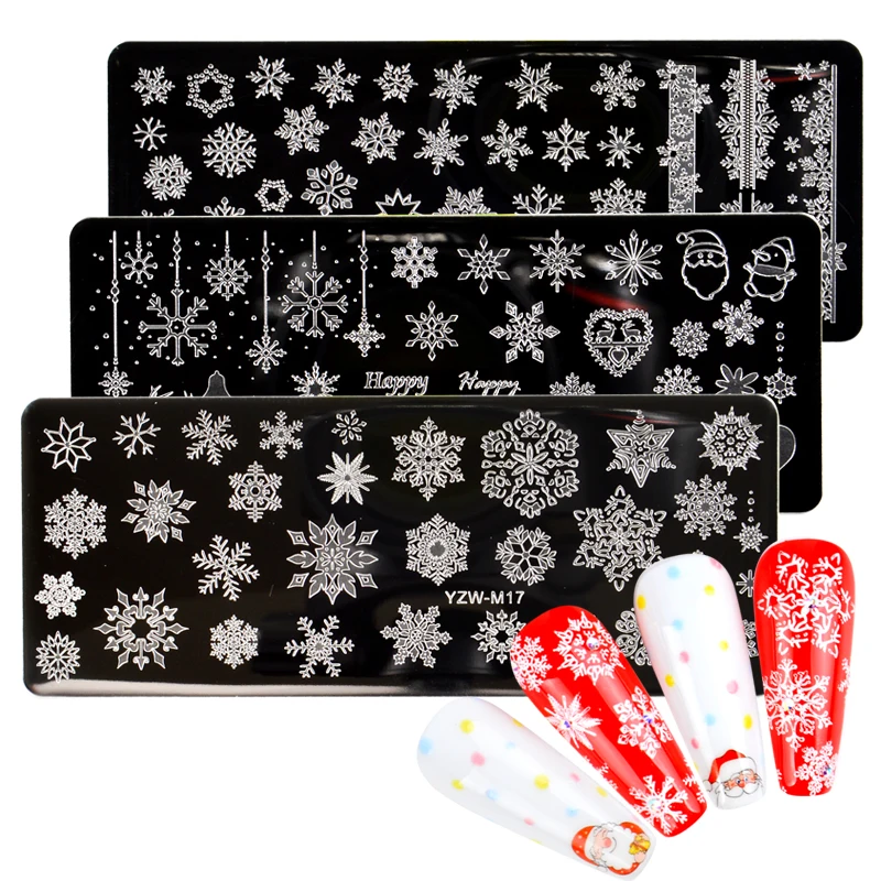Трафарет для ногтей YZWLE, с цветами, кружевами, новогодним и рождественским принтом, пластина для стемпинга для нейл-арта