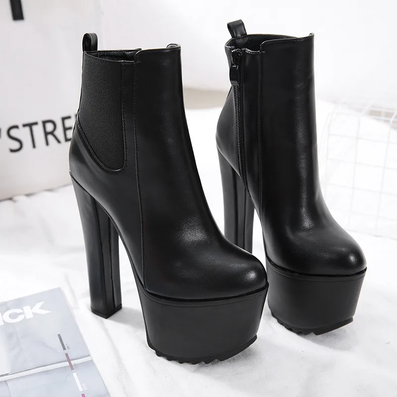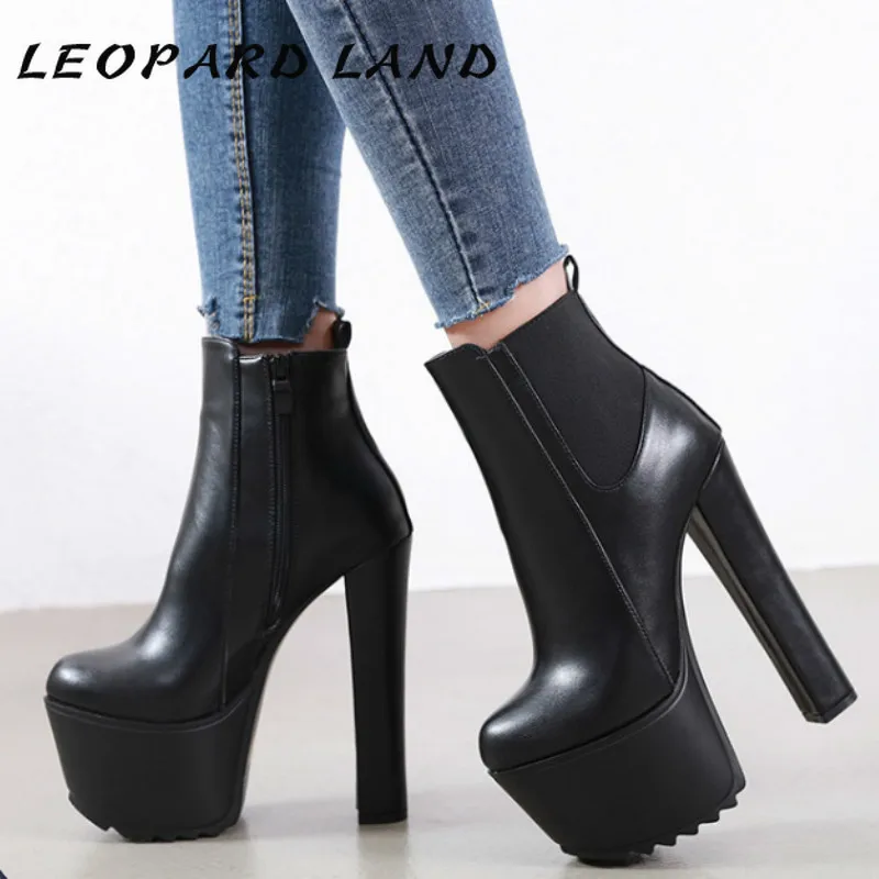 Леопардовые женские сапоги на высоком каблуке; Новинка 2021 года; Зимние водонепроницаемые сапоги на платформе и толстом каблуке 16 см; Ботильоны на высоком каблуке; JXQ