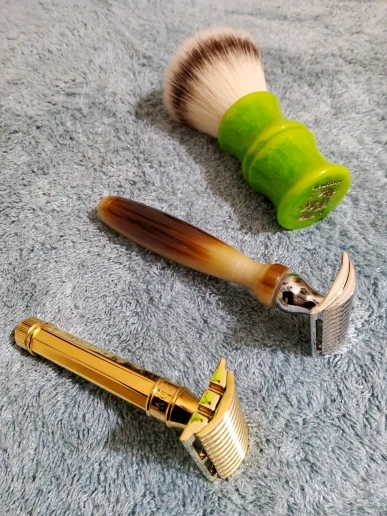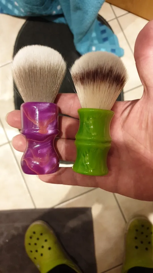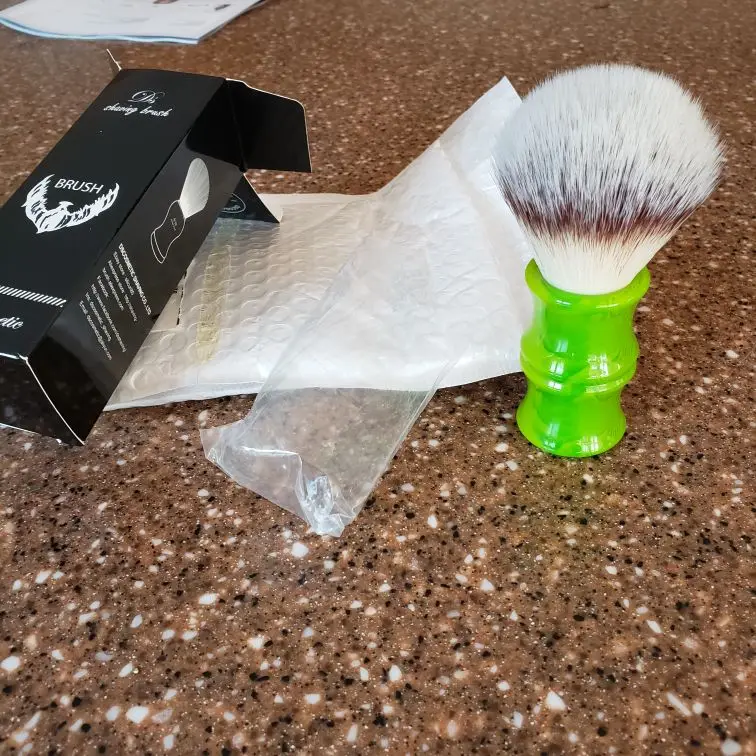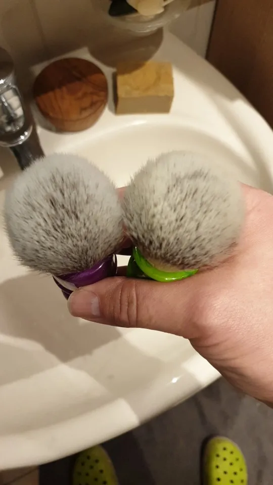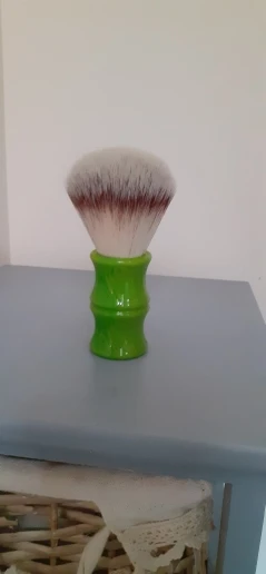 Помазок отменный. Сегодня синтетический ворс у меня в приоритете, не потому что я борюсь за природу, просто он по потребительским качествам мне больше нравится. Ручка "под бамбук" очень удобная, ухватистая и в меру длинная. Годится для взбивания пены даже в глубокой чаше, ну и прямо на лице тоже, достаточно перехватиться за второе "коленце". Красивый зелёный цвет дарит эстетическое наслаждение каждое бритьё. Жена ворчит - "чо так долго!?", не понимает, что я балдею от нового помазка.