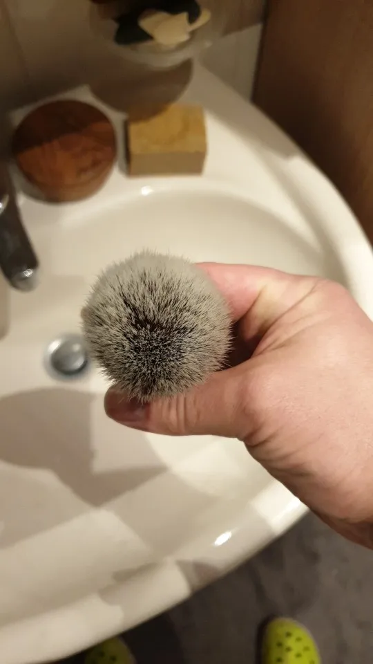 Правильное описание, это кисть с очень мягким синтетическим ворсом, с толстым узлом 26 мм. Он будет более подходящим для пользователей с большими руками, так как ручка длинная-это хороший кусок кисти! Прикосновение к волосам на лице очень мягкое, поэтому эта Кисть может быть особенно полезна для людей с нежной кожей, предрасположенной к раздражению. Мягкие волосы также легче подготовить пену для бритья, даже если это из твердого мыла. Согласно моему мнению, это рекомендуемый товар.