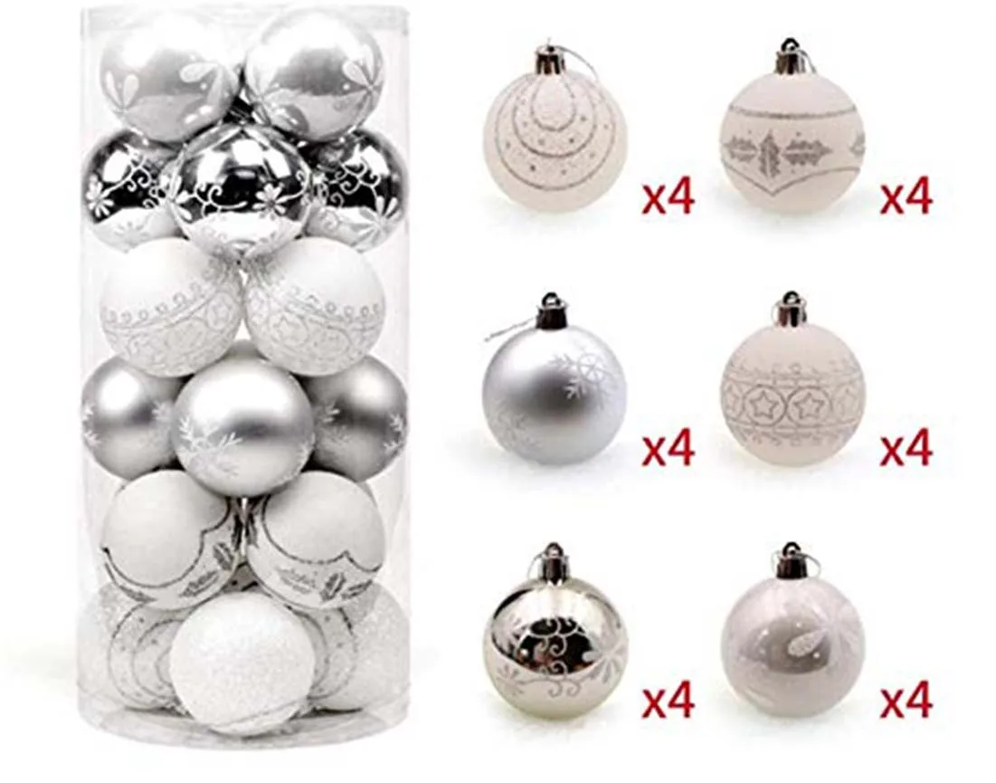 24 шт., украшения для рождественской елки, белые шары для украшения праздника, свадьбы, Рождества