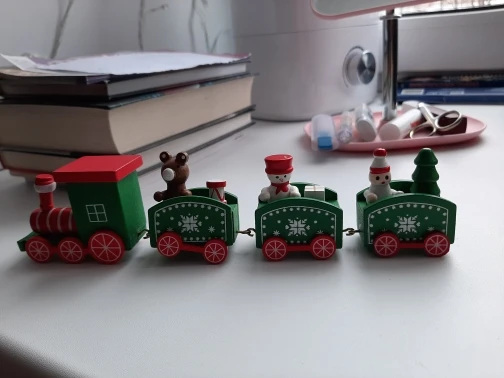 Паровозик ну ооочень маленький. Пришёл с небольшим браком, смотрится неплохо, по новогоднему.шел 3 месяца.