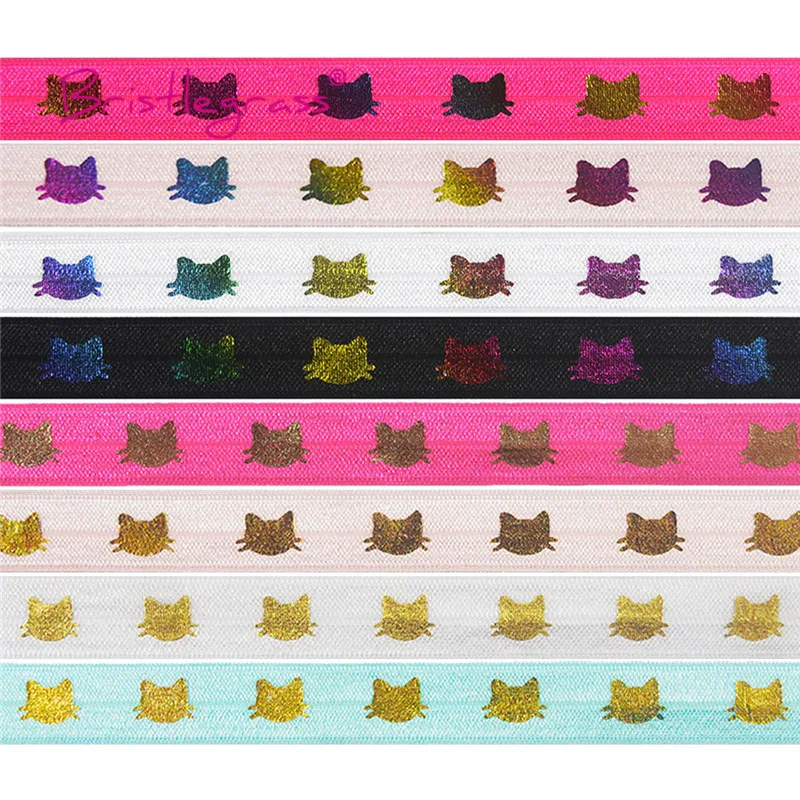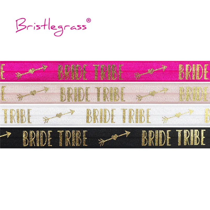 Щетинистая трава 2 ярдов 5/8 "15 мм Радужная Единорог кошка надпись «Невеста Tribe» фольга печать Сложите Над Эластичный враг повязка из спандекса волос галстук швейная отделка