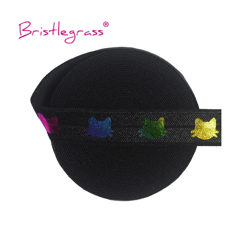BRISTLEGRASS 2 ярда 58 "15 мм Радуга Единорог кошка надпись Bride Tribe Фольга принт на голову эластичная повязка для головы с враг повязка из спандекса, резинки для волос Швейные отделка