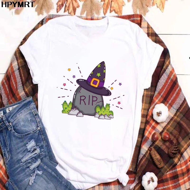 Женская футболка в стиле Харадзюку, с графикой на Хэллоуин, 90s, модная летняя футболка в стиле хип-хоп, 2020