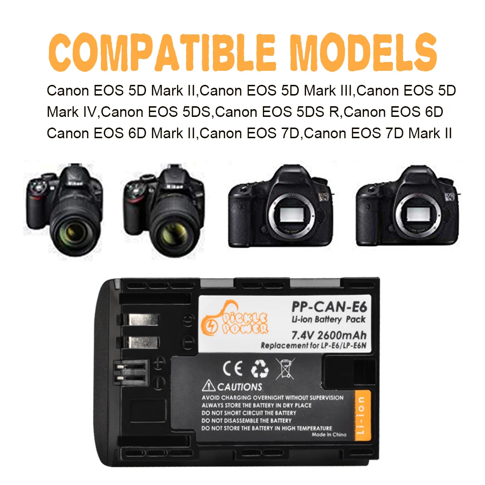 Battery TypeLPE6 Battery for Canon EOS 6D 5D Mark II 60D 7D