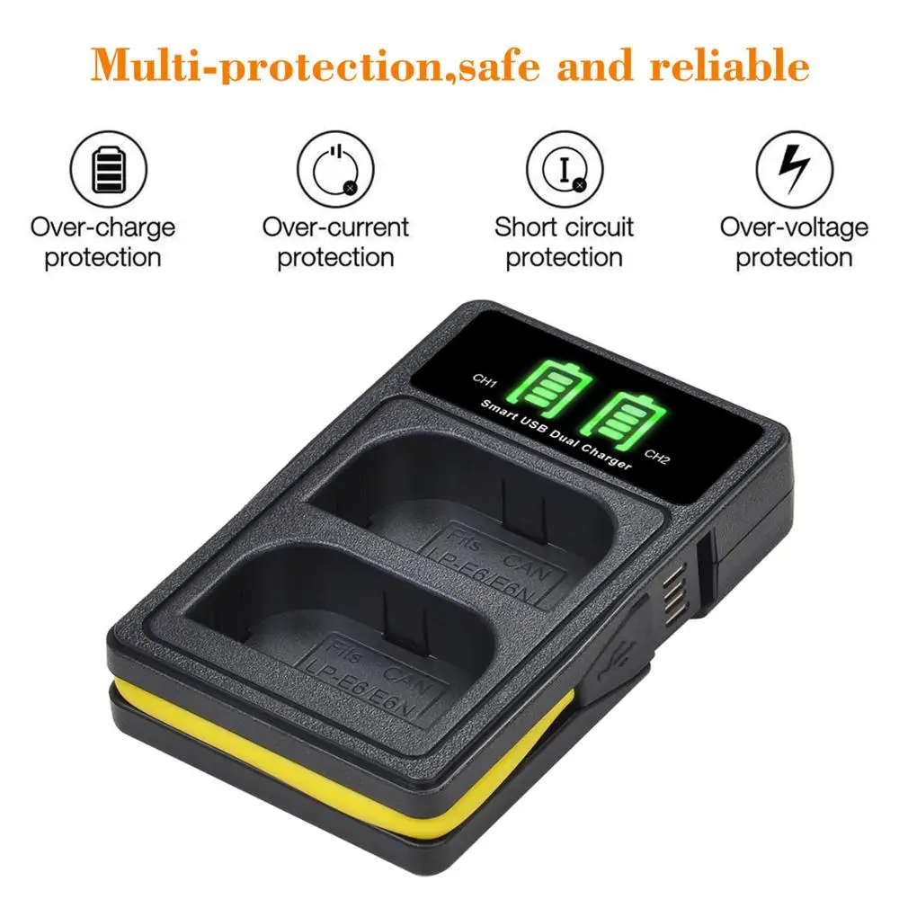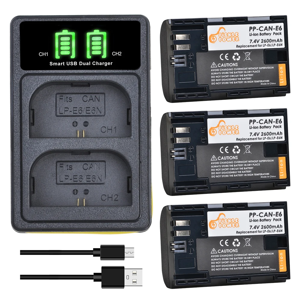 Аккумулятор LPE6 LP E6 LP-E6 2600 мАч + двойное зарядное устройство USB со светодиодной подсветкой для камеры Canon EOS 5D Mark II III 6D 7D 60D 70D 80D EOS 5DS R