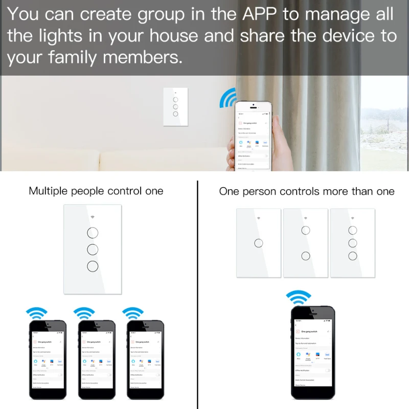 5. Не требуется нейтральный провод и только для 1-сторонней цепи; Поддерживает только сеть 2,4G; Гораздо более простой режим сопряжения для добавления устройства с подключенным WiFi и Bluetooth