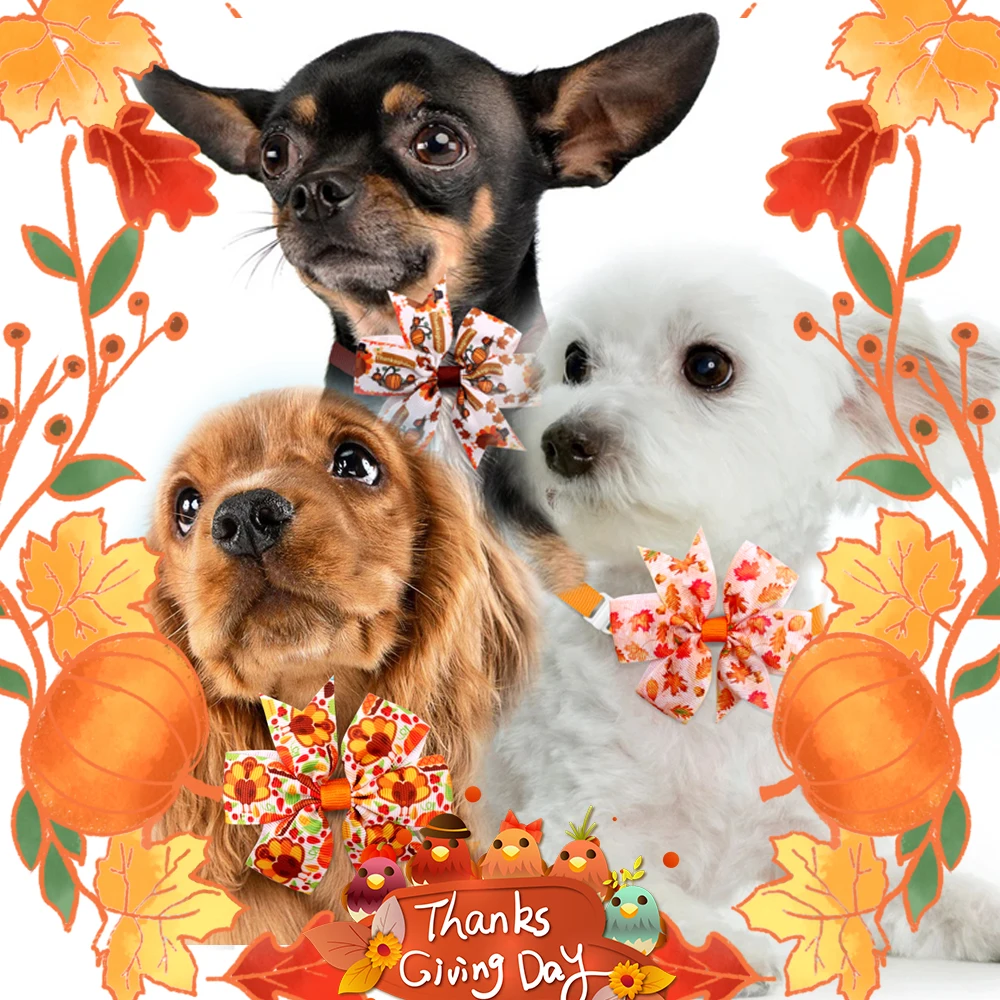 Бантики для собак, 60 шт., осень галстук-бабочка для собаки, аксессуары для собак, День благодарения, для маленьких собак, для ухода за кошками