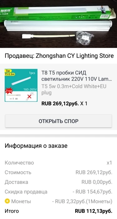 Продавец отправила мне поломанную лампу, вернуть за неё свои деньги я не могу, потому что Аликспресс мне предлагает отослать товар продавцу, упаковка на вид целая, значит напрашивается вывод, что продавец кладёт испорченный нерабочий товар в одну посылку с другими товарами и всеми способами пытается оттянуть время, чтобы только не возвращать деньги! Не советую здесь делать покупки, прод безответственнаый, только вешает лапшу на уши!