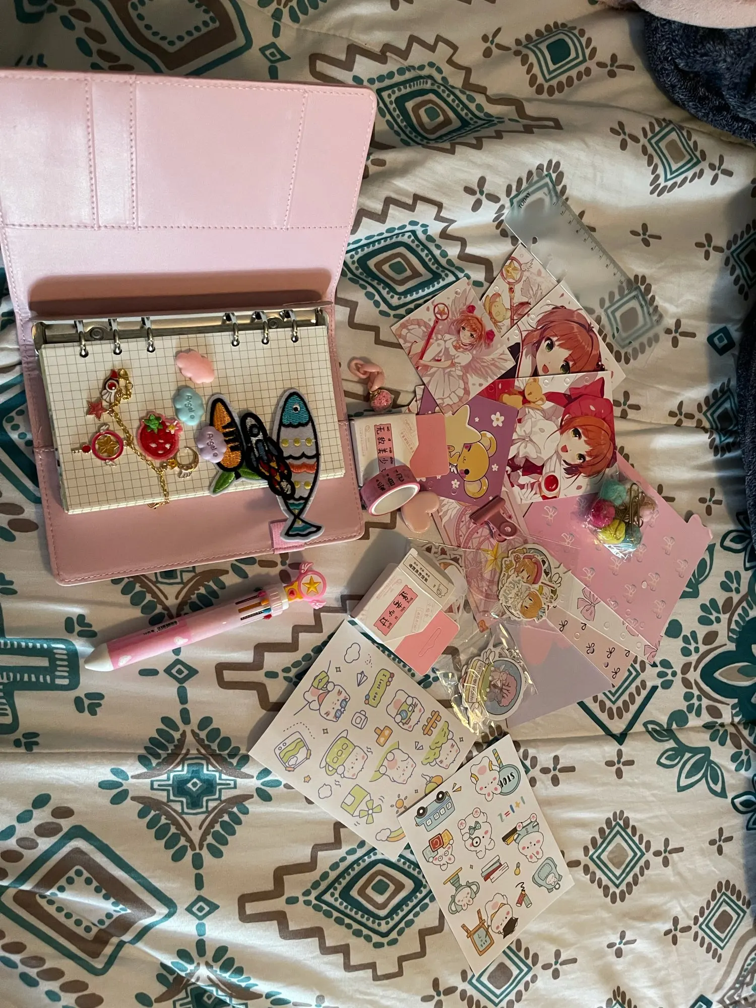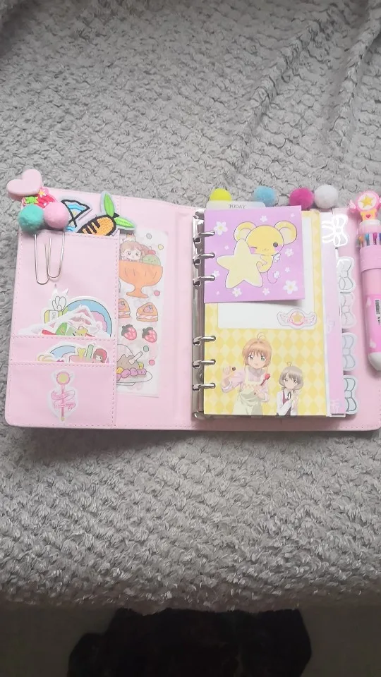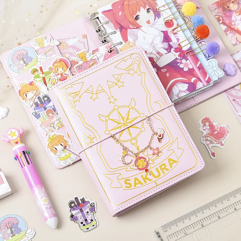 Записная книжка с цветными страницами, в стиле аниме "Розовая сакура", 6 отверстий, Канцелярский набор планировщик для журналов