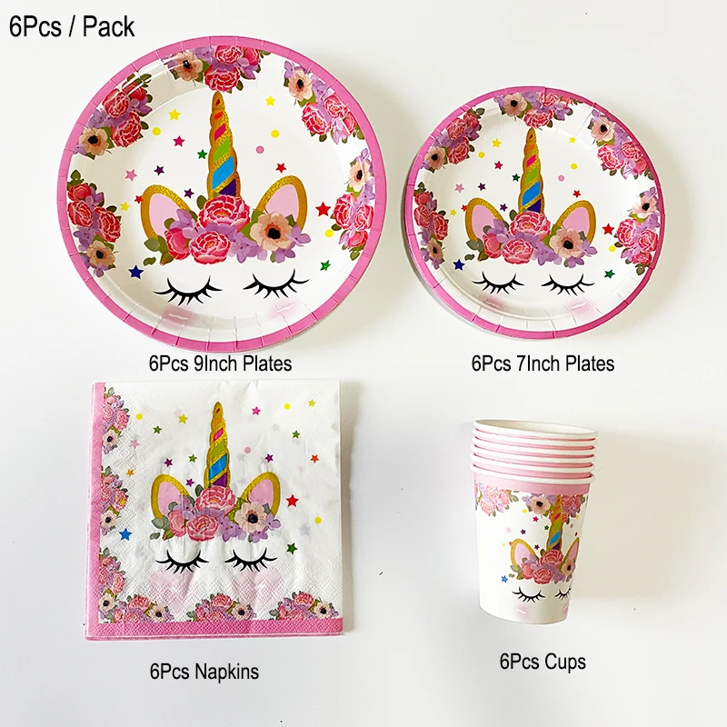 Набор одноразовой посуды для девочек, украшение для дня рождения с единорогом, чашки, тарелки, салфетки для будущей мамы