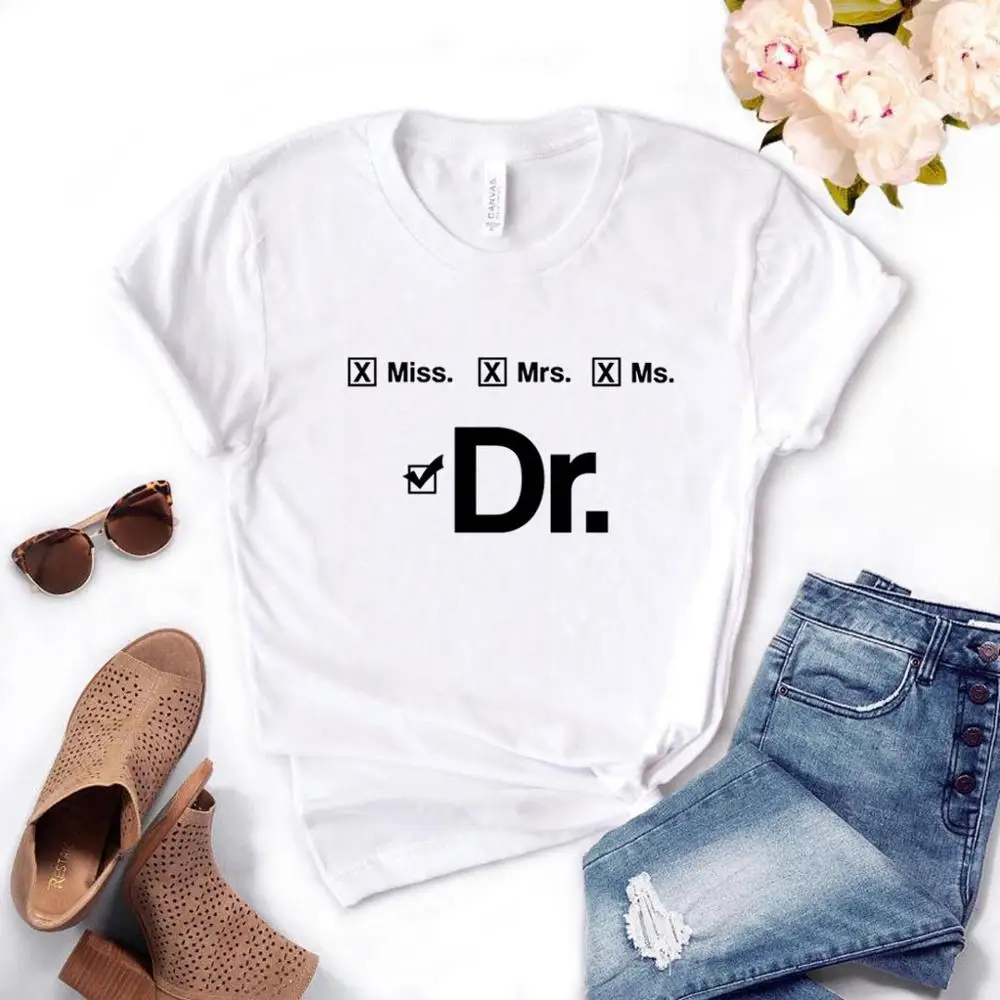 Женские футболки Miss Mrs Ms Dr с принтом доктора, хлопковая Повседневная смешная Футболка для леди, Юн, хипстерская футболка для девушек, FS-35