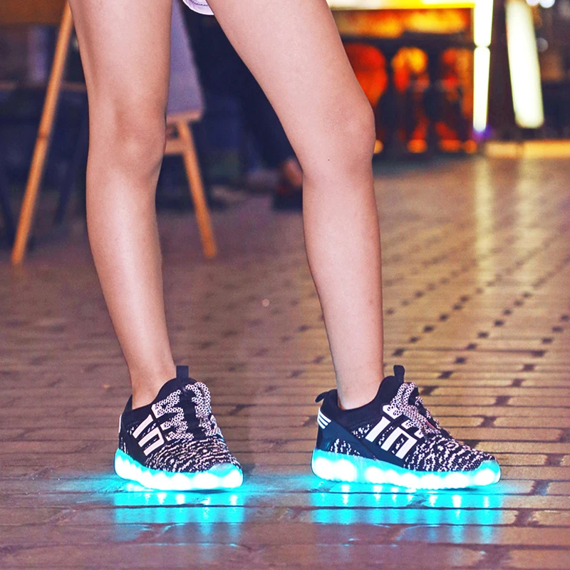 Детские светящиеся кроссовки со светодиодной подсветкой, размеры 28-43