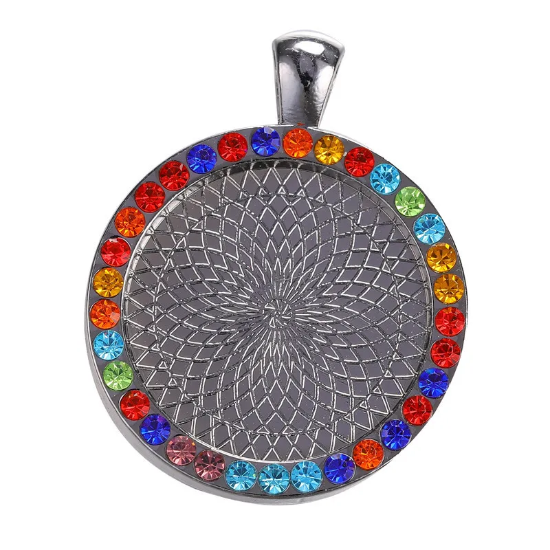 60 шт 25 мм кабошон основа подвески настройки сплав Красочный Алмаз Шарм, изготовление украшений для DIY ожерелье ювелирных изделий